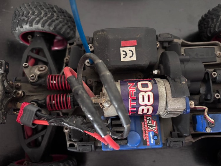 Once the cleanup was done, I borrowed a battery from another RC car and plugged it in. Eureka, the ESC lit up. There was hope.