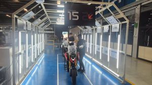 Every X-47 undergoes end-of-line functional and dyno testing. Throttle response, braking, electronics and ride modes are validated against performance benchmarks. Watching a freshly assembled motorcycle strapped onto a dyno for its first simulated run was a highlight.
