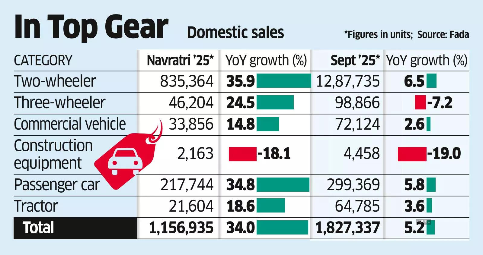 For the entire September, automobile retail sales across categories increased by 5.2% to 1.83 million units, despite tepid demand in the first three weeks ahead of the GST 2.0 transition.