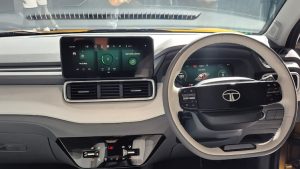 Inside, the Punch.ev facelift retains the familiar dashboard layout and dual-tone theme, now complemented by revised trim finishes. The cabin continues to focus on functionality, while higher variants receive upgraded technology.