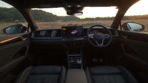 Moving inside, again, the interior too is very similar to the Tiguan R-line and features a large 15-inch touchscreen that is angled towards the driver and controls most of the vehicle’s key functions. While the leather-appointed front seats retain the massage function seen on the Tiguan R-Line, the Tayron replaces seat heating with front-seat ventilation, a feature better suited to Indian conditions. Other highlights include a fully digital instrument cluster, a panoramic sunroof, customisable ambient lighting with up to 30 colour options, and Matrix LED lighting technology.
