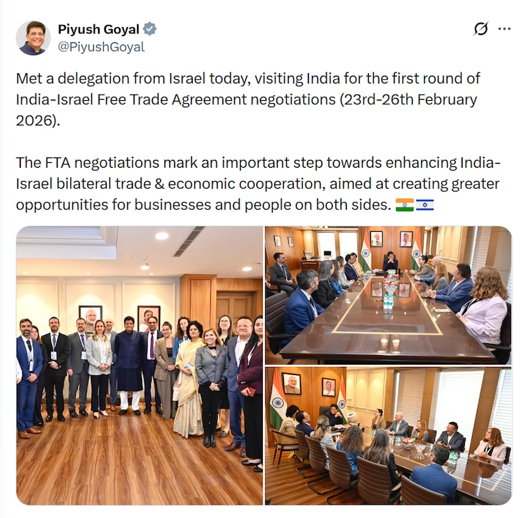 Union Commerce and Industry Minister Piyush Goyal met an Israeli delegation visiting India for the negotiations and described the discussions as an important milestone in enhancing bilateral economic ties. In a post on X, Goyal said the negotiations in New Delhi were aimed at creating greater opportunities for businesses and people in both countries.