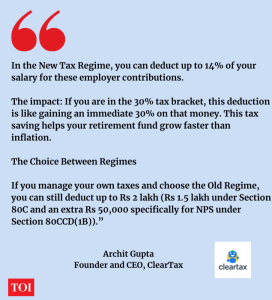 “Think of NPS as a mutual fund designed specifically for your retirement. Its main purpose is to help you stay disciplined by keeping your funds invested until you reach age 60,” Archit Gupta, Founder and CEO of ClearTax told TOI.