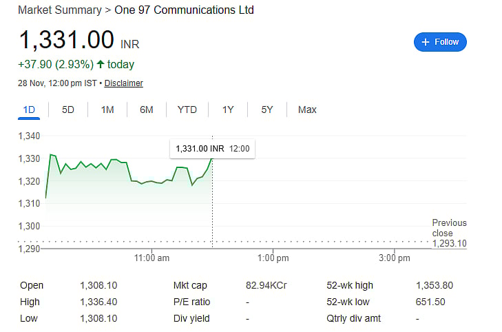 Paytm shares closed 0.51% higher at ₹1,293 on Thursday. Despite the positive developments and Goldman’s ₹1,570 target, the stock remains: