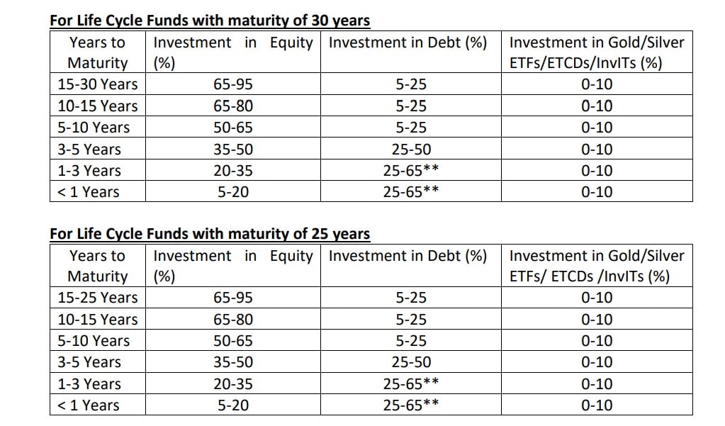Exposure to equity and debt is a function of the total maturity of lifecycle funds.
