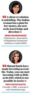 Yet the uptick in the number of women investors is too encouraging to dismiss. “We now need to go deeper into the non-metros to create awareness, so that women make informed decisions and feel confident to handle their accounts themselves,” says Lakshmi Iyer, group president, investments, Bajaj FinServ. Maheshwari shares her optimism. “The Indian woman has a plan for her money; she now seeks knowledge and direction. I see the next generation of women investors catching on much earlier in life. The next generation of evolution will happen before we even realise.” Amen to that.