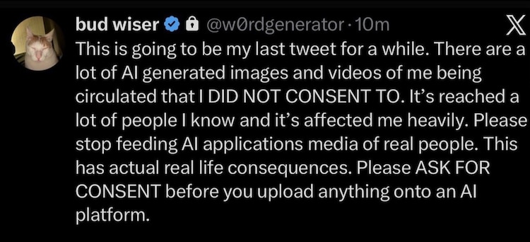 She emphasized the real-life consequences of such actions, urging people to “ASK FOR CONSENT before you upload anything onto an AI platform.” Her account is now private, visible only to followers.