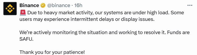 • Binance outage and technical issues amplified market chaos
