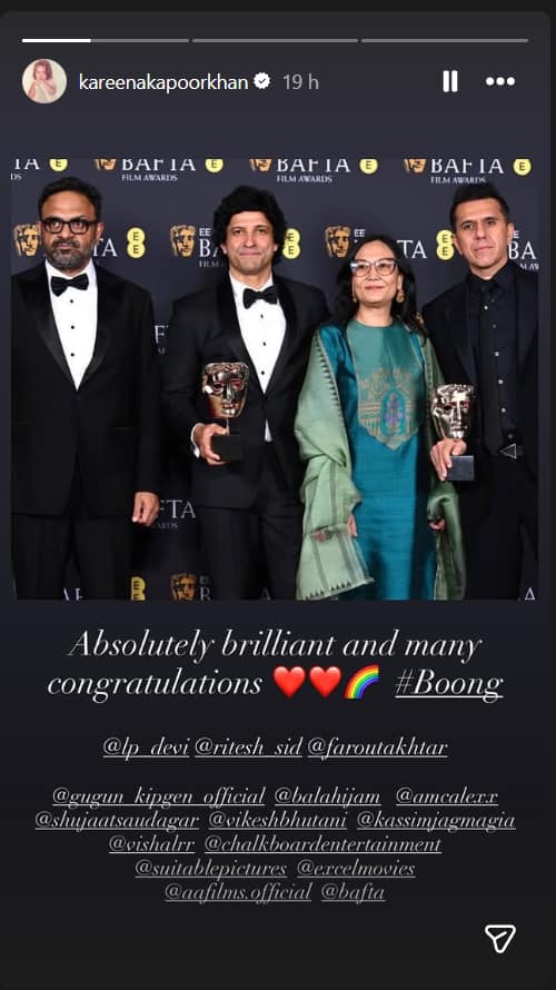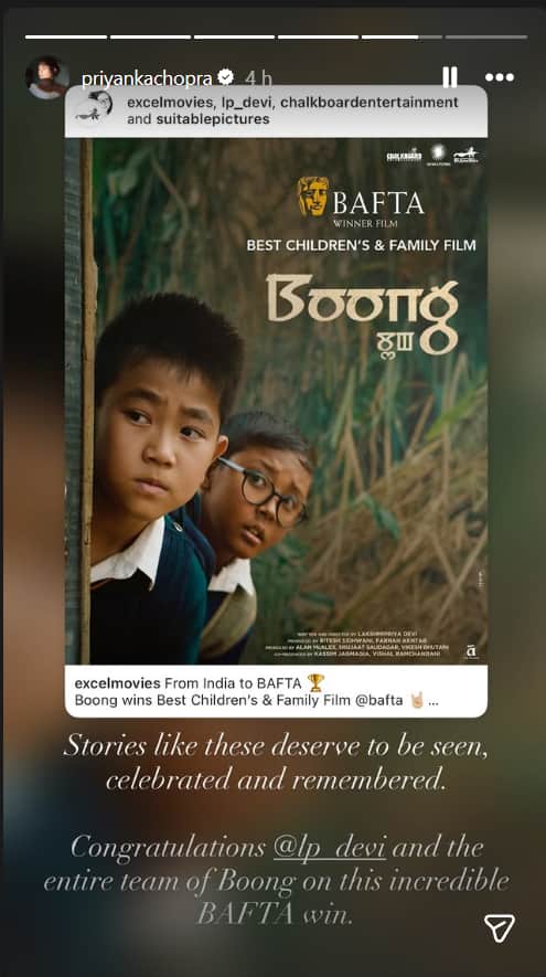 The actress shared the poster of Boong and wrote, “Stories like these deserve to be seen, celebrated and remembered. Congratulations @Ip_devi and the entire team of Boong on this incredible BAFTA win.”