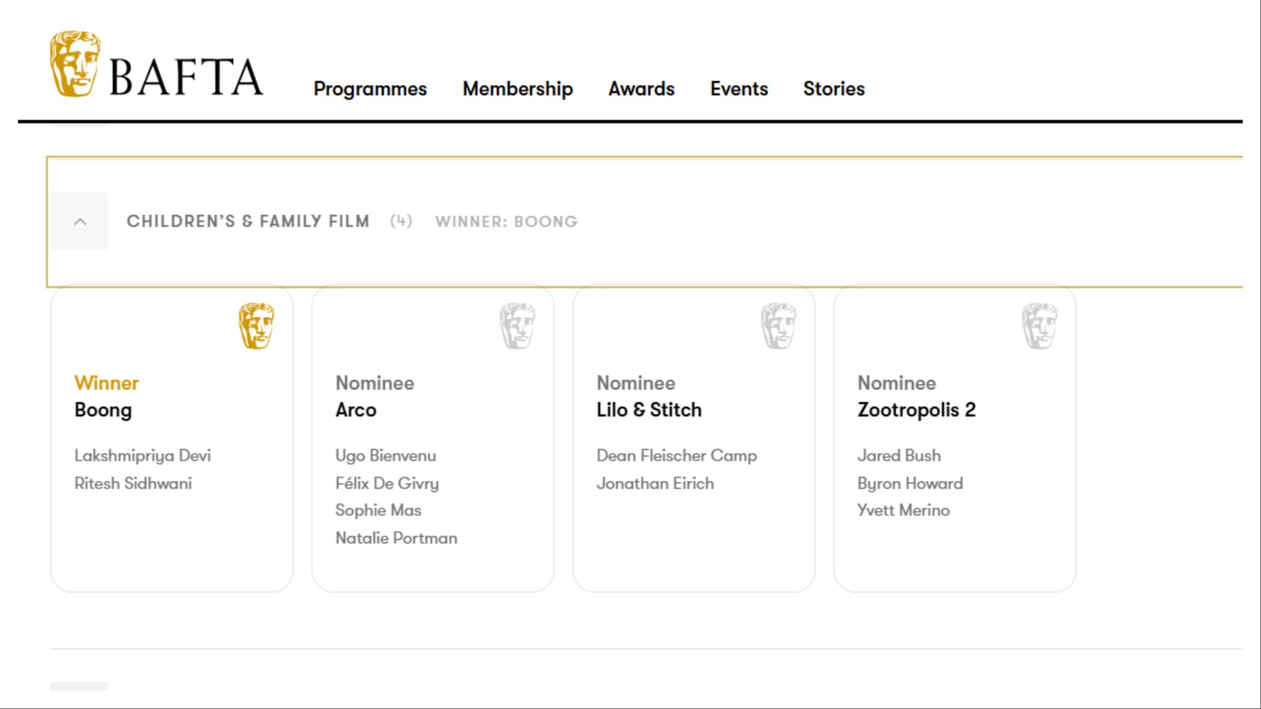 Boong competed with Arco, Lilo & Stitch and Zootopia 2.