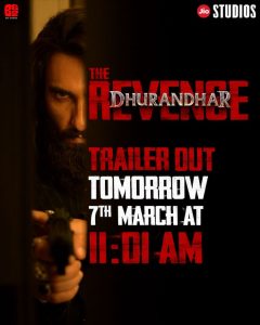 The makers of Dhurandhar: The Revenge announced the release date of the film’s trailer on Friday. In an official statement, Jio Studios and B62 Studios revealed that the trailer for the second instalment of the Aditya Dhar directorial will be released on Saturday, March 7.
