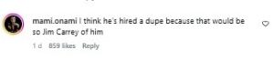 Video of Carrey at the ceremony prompted numerous comments, with some users suggesting he might have undergone cosmetic procedures, while others simply denied believing the fact that he is actually Jim Carrey. One of the fans wrote, “I think he’s hired a dupe because that would be so Jim Carrey of him,” while another wrote, “I believe his face change is the result of some cosmetic work which has altered his appearance, it’s Jim, you can see the wrinkles and creases in his face if you compare pics, but sadly he’s altered his appearance where he’s become unrecognisable, hopefully he can have it corrected & fat grafts removed.”