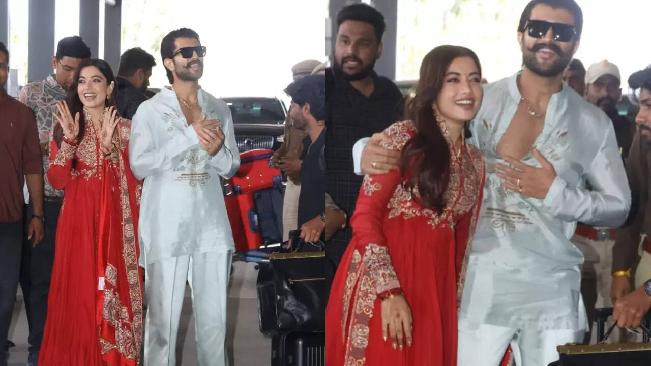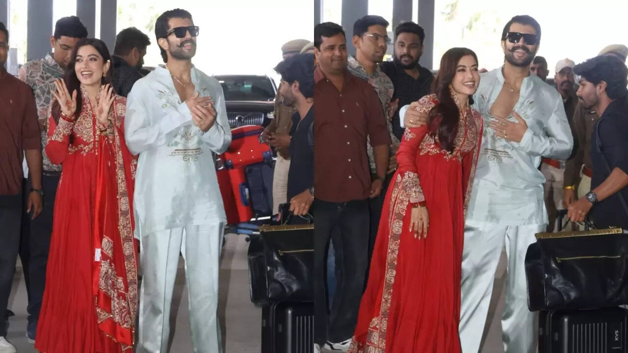 Newlyweds Rashmika Mandanna, Vijay Deverakonda make first appearance for the paps at Udaipur airport, throw flying kisses