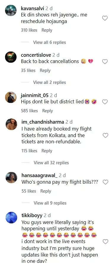 Soon after the update, fans took to social media to express their disappointment. Some also questioned whether they would be compensated for travel expenses incurred for the shows.