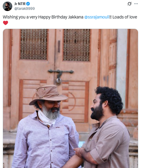 Rajamouli’s ‘RRR’ stars, Ram Charan and Jr NTR, were among the first to extend their wishes on social media. Jr NTR, who shares a close bond with the director, took to X (formerly Twitter) and shared a picture with him, writing, “Wishing you a very Happy Birthday, Jakkana @ssrajamouli!! Loads of love. “