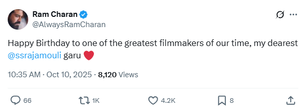 Ram Charan also expressed his admiration for the filmmaker with a heartfelt post that read, “Happy Birthday to one of the greatest filmmakers of our time, my dearest @ssrajamouli garu. ” Both actors, who shared the screen in the global hit ‘RRR,’ credited Rajamouli for his vision and storytelling genius that brought Indian cinema unprecedented international acclaim.