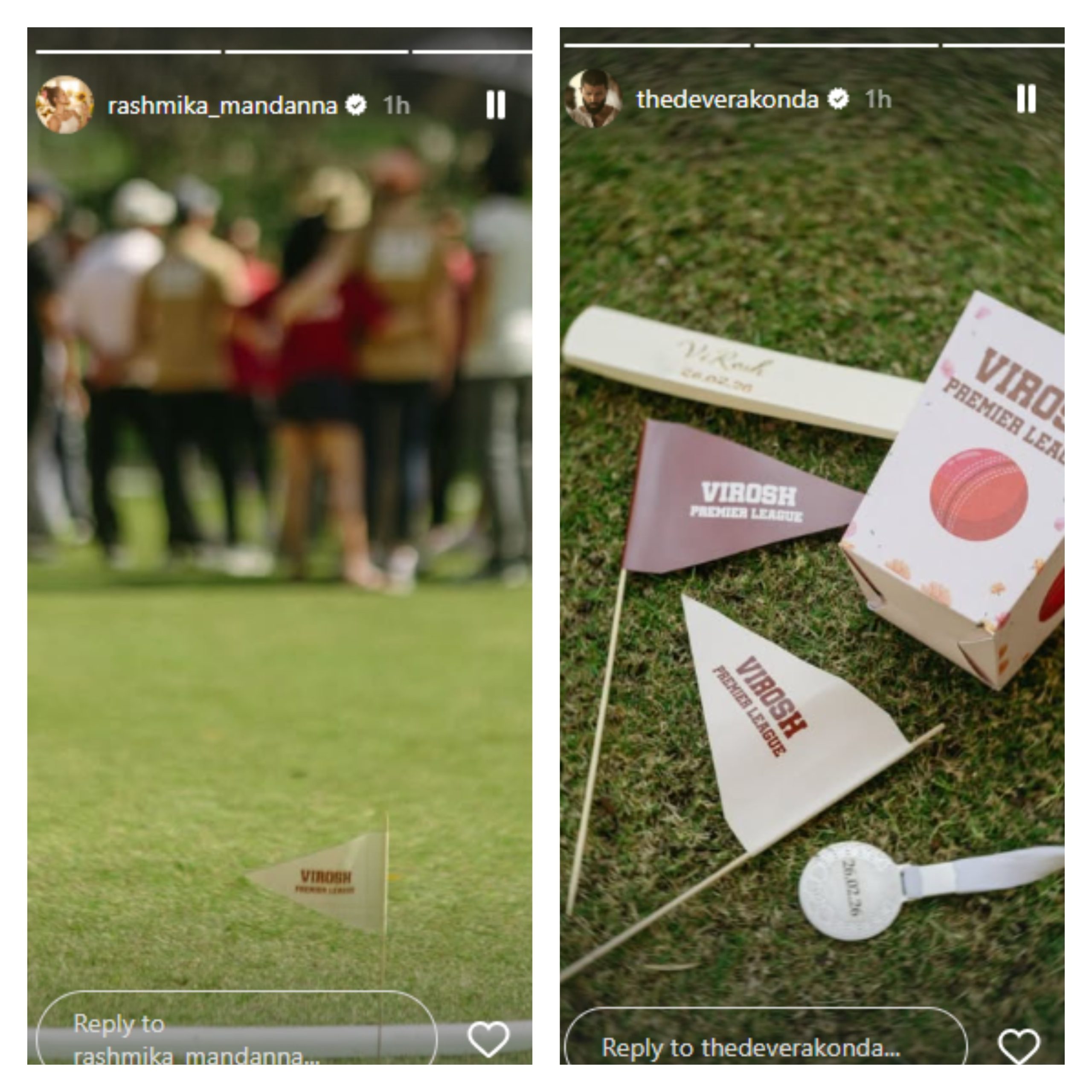 Rashmika shared a picture of a field mark that read ‘Virosh Premier League’ with a bunch of people gathered together for the fun game. They were not visible in the picture. Meanwhile, Vijay also posted on a similar note, sharing a popcorn bucket which had ‘Virosh Premier League’ written on it. Their little sneak peek of the fun and games with their close friends and family implies that the two are keeping the gathering an intimate affair where they are surrounded by near and dear ones.