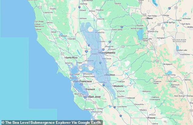 While the West Coast shows less overall flooding, California’s capital Sacramento would be completely submerged in worst-case scenarios. Bay Area cities including San Francisco and San Jose would also face severe impacts.