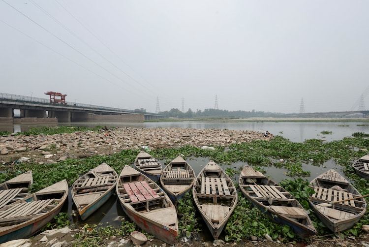 The Yamuna river, which has receded in the dry summer months, causing water shortages in New Delhi.