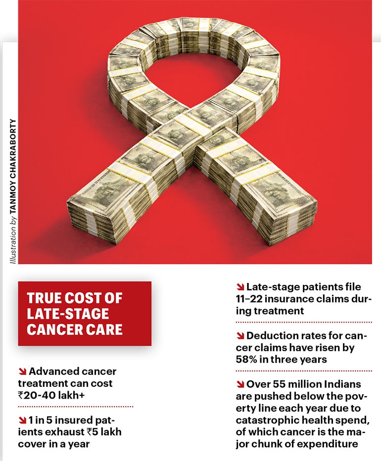Saurabh Arora, co-founder and CTO of Plum, says this is when families realise they are underinsured. “At least one in five patients exhausts a Rs 5 lakh cover within a year, and cancer treatment can go up to Rs 20-30 lakh,” he says. Shrinking payout ratios compound the problem. Many insurers place modern treatments like immunotherapy or oral chemotherapy under high co-pay structures, forcing families to bear half the cost. Insurers also often refuse reimbursement for newer cancer drugs until Indian regulatory approval, even when they are internationally accepted as standard care. “Until faster drug approval pathways exist, families facing serious illness will have to be prepared for significant uncovered expenses,” Arora says. He recommends that the Insurance Regulatory and Development Authority of India should mandate minimum payout benchmarks for advanced cancer and standardise cancer-care riders that cover essential therapies without co-payments.