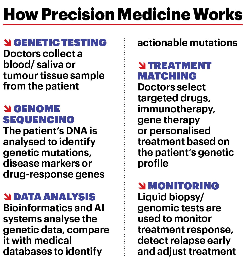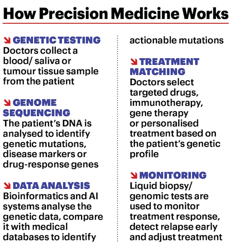 ast year, 11-year-old Aarav Mehta, from Ahmedabad, stopped responding to standard treatment for a rare blood disorder. Instead of another round of broad-spectrum drugs, doctors suggested something different: whole-genome sequencing, followed by a personalised therapy designed around the exact genetic mutation causing his disease. Within weeks, Aarav’s DNA was sequenced, the faulty gene pathway identified and he was put on a therapy designed for that mutation. A few months later, his symptoms stabilised. Cases like Aarav’s becoming the face of a new era in Indian healthcare—one where treatment is not based on a one-size-fits-all approach developed for the average patient, but on an individual’s DNA and unique disease profile.