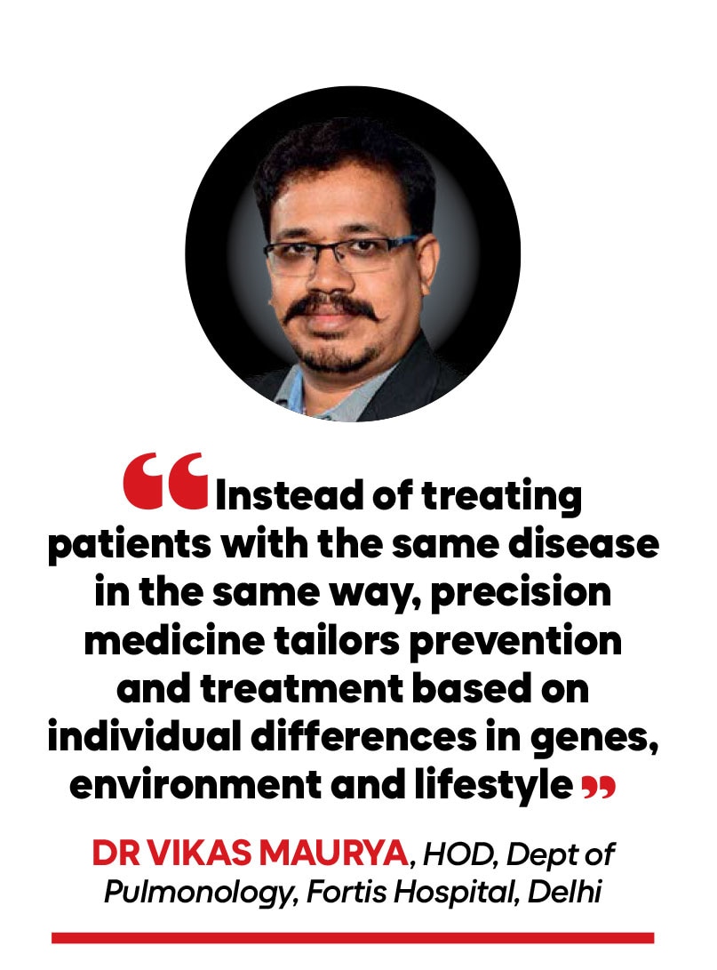 “Instead of treating patients with the same disease in the same way, precision medicine tailors prevention and treatment based on individual differences in genes, environment and lifestyle,” says Dr Vikas Maurya, HOD, Department of Pulmonology & Sleep Disorders, Fortis Hospital, Delhi. “The idea is to move from population-based medicine to personalised medicine, where treatment decisions are guided by biological data.”