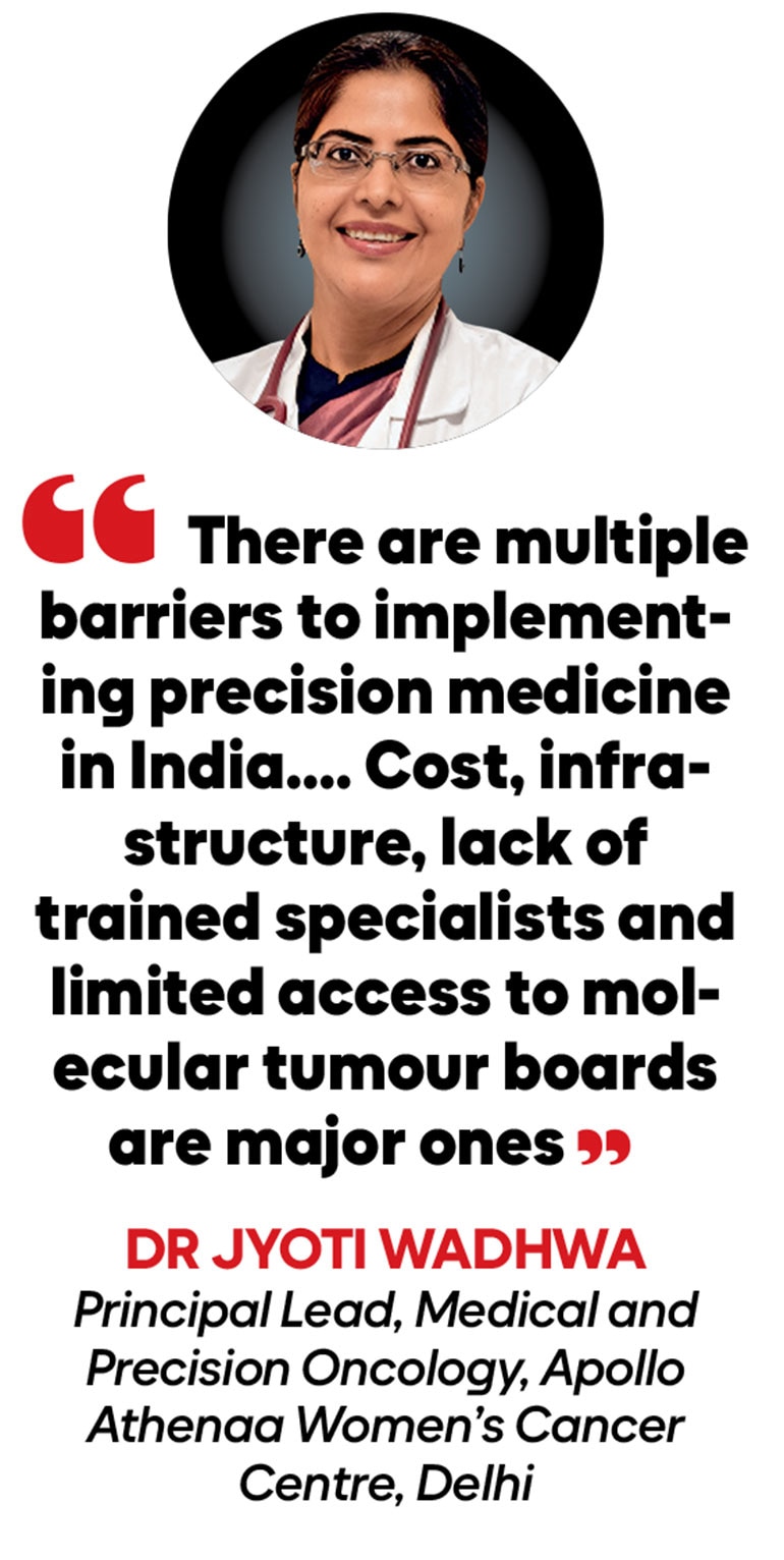 Cost is only part of the problem. Precision medicine requires specialised laboratories, bioinformatics systems and trained molecular scientists who can interpret genomic reports and guide treatment decisions. Many of these facilities are still concentrated in metropolises with large hospitals, like AIIMS Delhi, Tata Memorial Mumbai and the Narayana and Apollo hospital chains. “There are multiple barriers to implementing precision medicine in India,” says Dr Jyoti Wadhwa, principal lead of Medical and Precision Oncology, Apollo Athenaa Women’s Cancer Centre, Delhi. “Cost, infrastructure, lack of trained specialists and limited access to molecular tumour boards (panel of medical experts who review complex cancer cases based on genomics) are major barriers.”