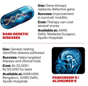 While precision medicine began in cancer care, its use is now expanding, especially in rare genetic disorders, cardiology and neurology. Indian hospitals are using genomic testing panels (tests that analyse multiple genes linked to cancer) for treatment selection and pharmacogenomic tests to identify medicines a patient is more likely to respond to. Gene-based treatments for conditions like spinal muscular atrophy and inherited retinal disorders are becoming available through specialised centres.