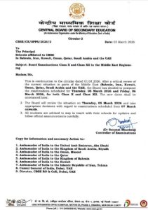 CBSE postpones Class 10, 12 board exams scheduled for March 5, 6 in Middle East
