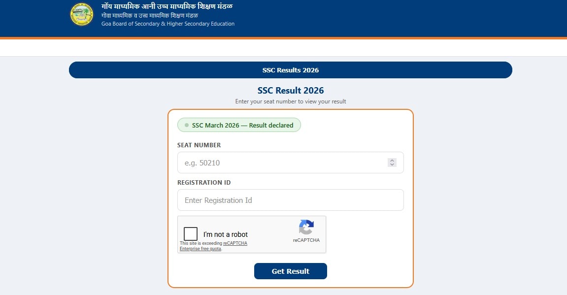 The Goa Board of Secondary and Higher Secondary Education, GBSHSE, has declared the Class 10 SSC Result 2026 today, April 26. Students who appeared for the Goa Class 10 examinations can now check their scores online through the official result portals.