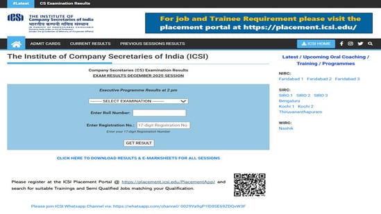 2. Click on ICSI CS Result 2026 result link available on the home page.