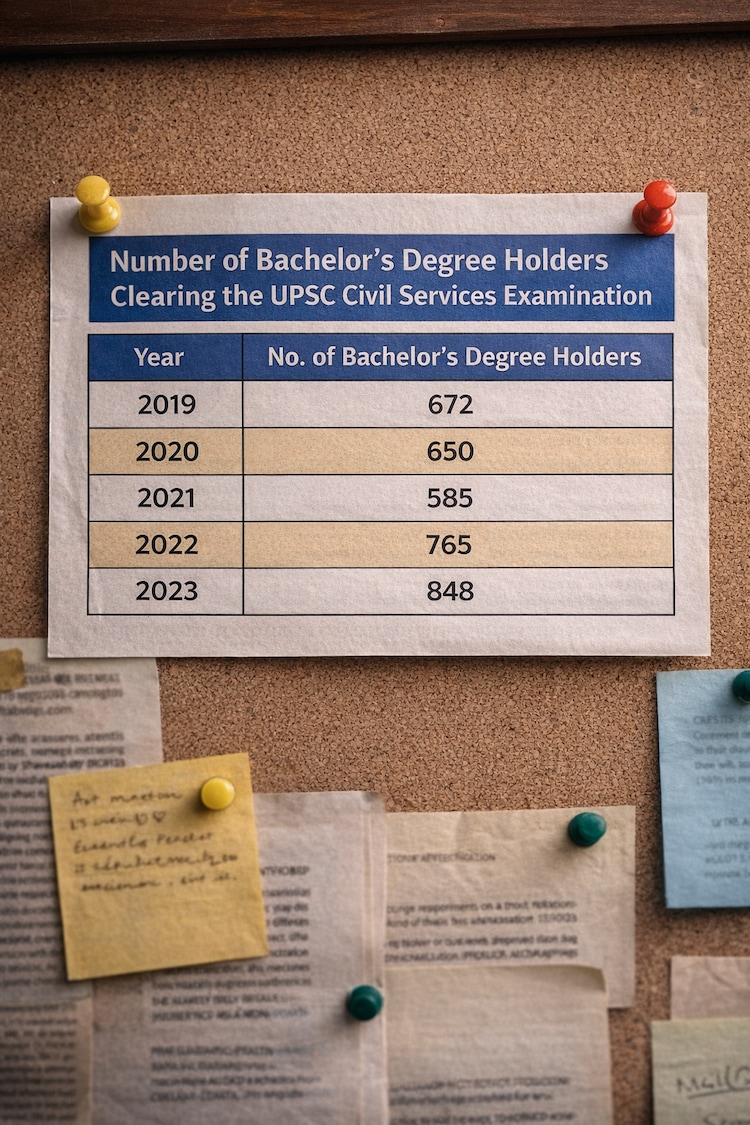 The consistent rise in bachelor’s degree holders in final UPSC lists since 2022, alongside broader graduate participation in SSC, Railways, and banking exams, points to an enduring trend.