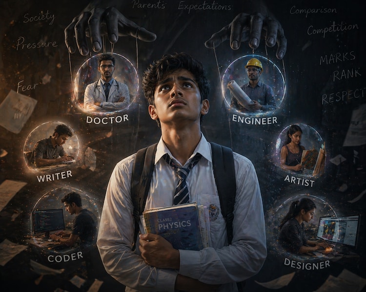 A student who loves design may be pushed into engineering. Someone interested in psychology may be told to choose medicine. A teenager who enjoys writing may hear, “What future is there in that?”