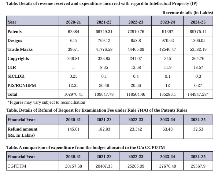 As the following tables show, while overall patent-related expenditure rose between 2023–24 and 2024–25, reimbursement claims did not see a matching increase, suggesting refunds are not being aggressively tapped in proportion to spending.