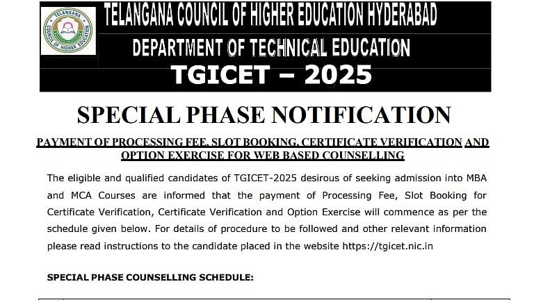 TS ICET 2025 Special Phase Allotment Results: The results of the TG ICET 2025 seat allocation under special phase counselling have been made public by the Telangana Council of Higher Education (TGCHE). On the login dashboard, candidates can view the Telangana ICET special phase allocation.