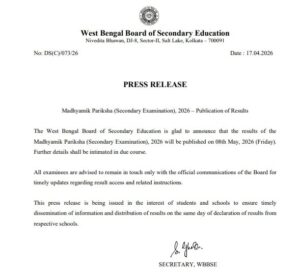 The wait is finally coming to an end for lakhs of students across West Bengal. In a major announcement, the West Bengal Board of Secondary Education has confirmed the release date of the Madhyamik Result 2026.