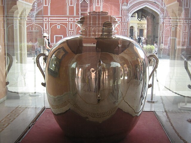 Today, when a visitor walks into the City Palace of Jaipur, the experience follows a series of pauses — first at the artefacts, and then at a massive jar, the largest in the world, recorded in the Guinness World Records and made entirely of precious silver metal.