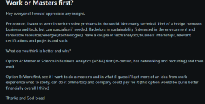 A Reddit post doing the rounds this week reads like a private conversation many final-year students are having with themselves. The writer has a bachelor’s degree in sustainability, a stack of internships across tech, analytics and business, and a clear ambition: work in technology to solve environmental problems. Not hardcore coding, but the space where business strategy meets data and systems.