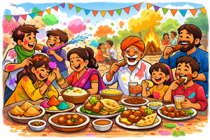 Traditional sweets like Gujiya, Malpua, and Thandai add to the festive spirit.