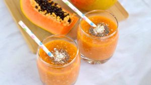 To prepare, blend one cup of diced ripe papaya with half a cup of regular or coconut milk, half a cup of ice, a teaspoon of honey, and a dash of cinnamon, then consume it in the morning to enhance nutrient absorption and promote regular bowel movements.