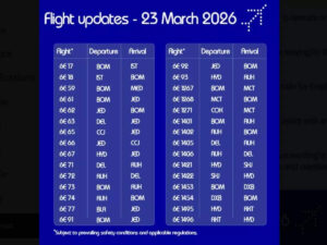 “1) The flights mentioned in the table below are scheduled to operate on 23 March 2026.