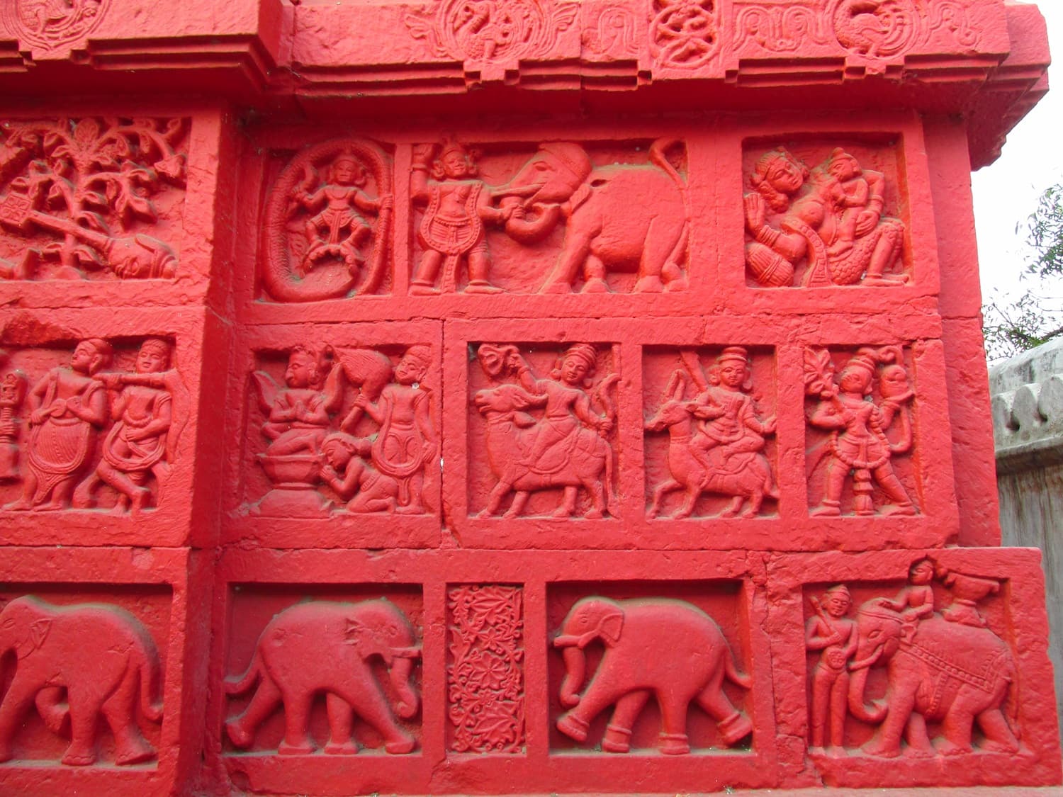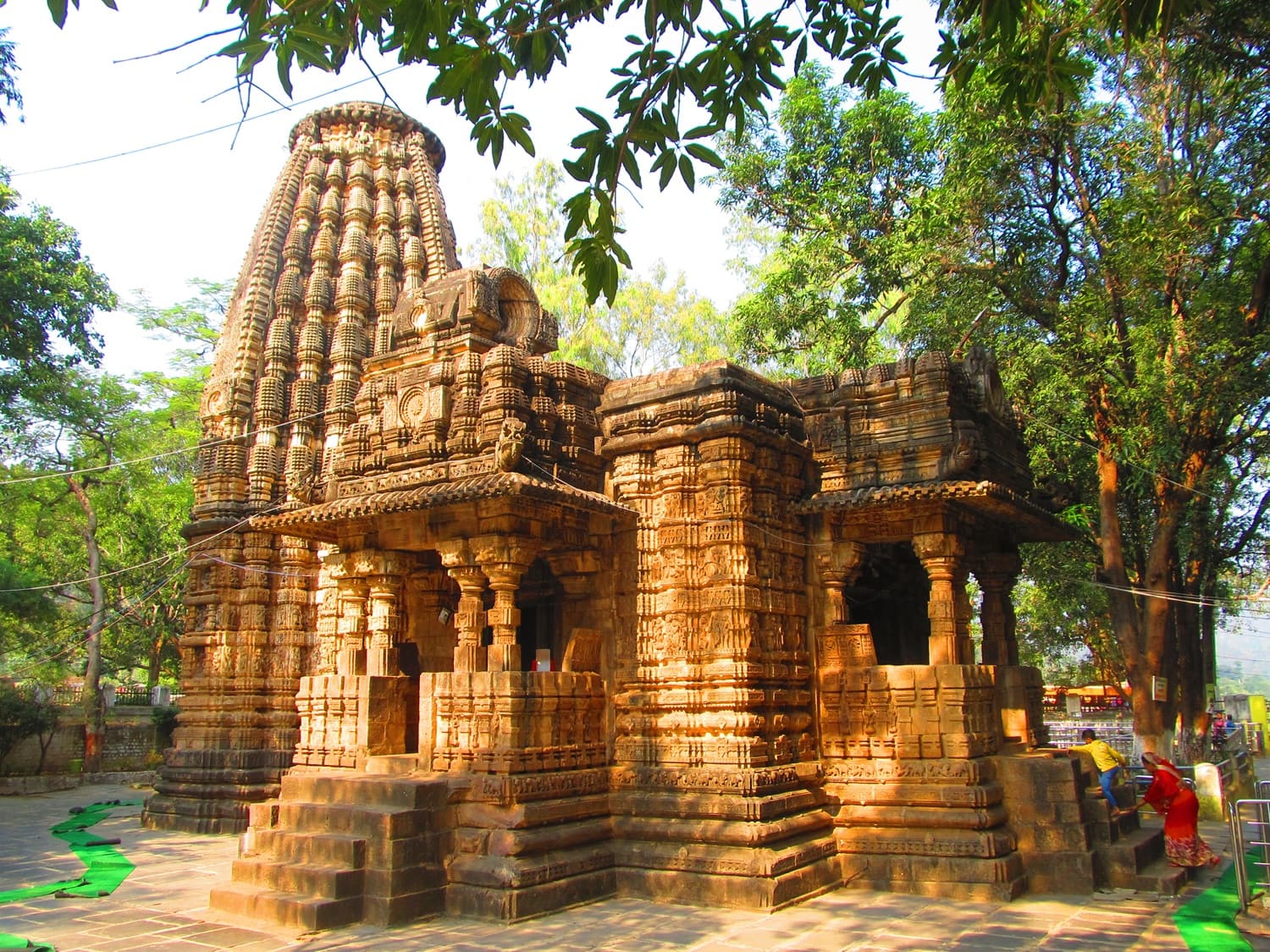 century by Nagavanshi rulers. Following a Nagara style of architecture – complete with a mandapa, shikhara and an inner sanctum – its exterior is embellished with friezes carved into stone, showing a range of deities, voluptuous apsaras and erotic couples. Within the shrine is a Shiva Linga that stands on 16 pillars.