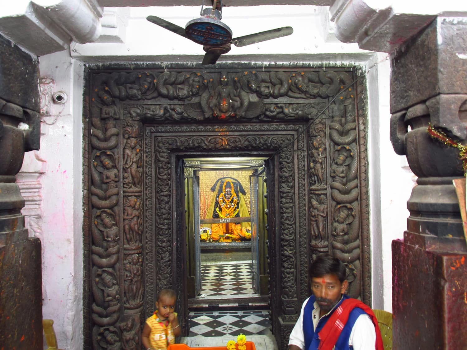 century period. At the corners of this complex are small shrines dedicated to Narasimha, Varaha, Vaman and Badrinath, with the main shrine in the middle. Looking beyond the layers of white paint, a visitor sees striking patterns on doorways and pillars. Divine figures, Nagas and mythological scenes are carved over the entire height of columns, indicating an ancient past.