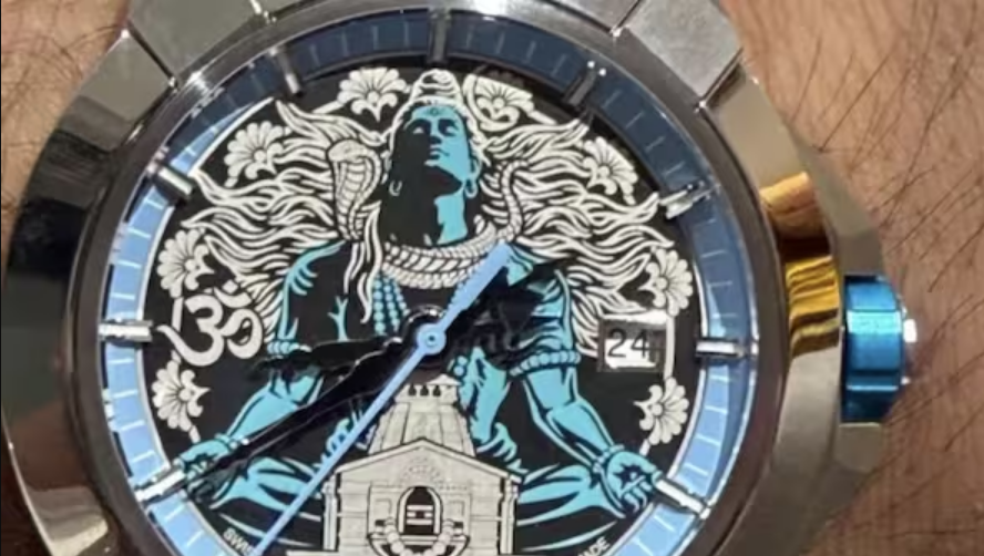 What makes this version special is the theme. The dial features artwork inspired by Lord Shiva in his Rudra form – perfect timing since the match happened on Mahashivratri. There are tiny details everywhere: an Om symbol, Rudraksha-style patterns, and even hands shaped like a trishul and damaru.