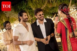 The Akkineni family, led by Nagarjuna, joined the celebrations, along with Daggubati Venkatesh, Namrata Shirodkar and her daughter Sitara Ghattamaneni, among others. Guests were seen exchanging hugs, smiles and laughter with the newlyweds while posing for photographs, making for picture-perfect memories.