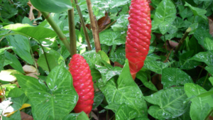 The magic of Shampoo Ginger lies in its flower head. As the plant matures, it grows a vibrant, red cone made up of overlapping bracts. And inside those little pockets? Pure, clear, sweet-smelling sap that has a slippery, gel-like texture. The best part is that getting the “shampoo” doesn’t mean destroying the plant. You just find a mature red cone—though the younger green ones work too—and give it a gentle squeeze right there on the stalk. The liquid oozes out like water from a sponge.