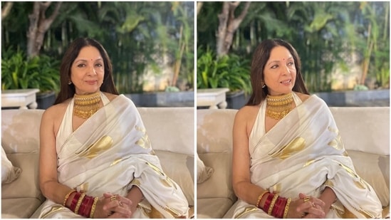 Her styling remained timeless and graceful. Neena wore her long, centre-parted hair loose, allowing it to fall naturally over the shoulders. Minimal makeup with soft, warm tones enhanced her features, while a small red bindi tied the entire traditional aesthetic together.