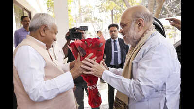 Shah, who was welcomed at Patna airport by top BJP state leaders and Union minister and former JD(U) chief Rajiv Ranjan Singh aka Lalan Singh, said that Nitish has never been tainted during his long tenure as an MLA, MP, Union minister and the chief minister. “Nitish has made a significant contribution towards taking Bihar forward in every way and implemented all the schemes and funds sent for Bihar by Prime Minister Narendra Modi in the last 11 years,” he said.