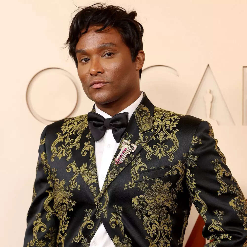 Law Roach wore a bespoke brooch by Swadesh. Its design is inspired by the bold symmetry of the Art Deco era, echoing the architectural language of the iconic Eros Building in Mumbai, India— also home to Swadesh’s flagship store. Crafted in luminous gold, the composition centres on a vivid ruby whose deep crimson glow is framed by precisely arranged diamonds set in clean, architectural lines.