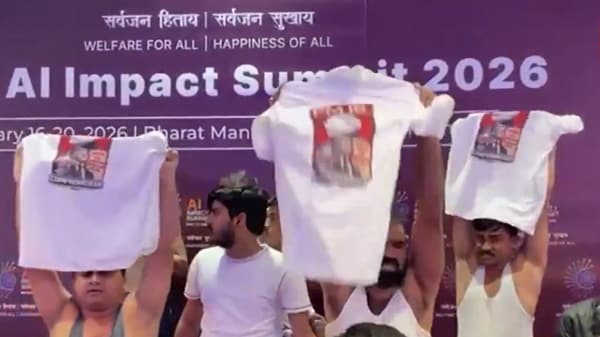 The workers entered the AI Expo Hall and walked with posters, and started chanting slogans. Later, they removed T-shirts. News agency ANI, citing Delhi Police, said that at least four to five people have been detained. They are further checking whether these protesters entered the venue with a pass or a QR code.